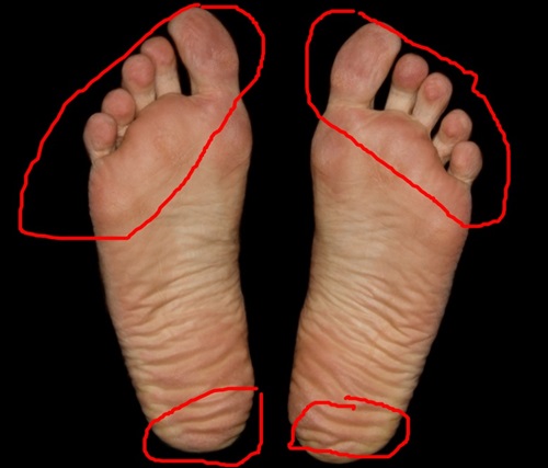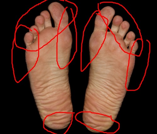 길을 걷다보면 가끔 걷는 모습이 조금 부자유스러운 사람을 보게 될 때가 있습니다. 너무 팔자로 걷거나 안짱다리로 걷는 모습을 보면서 나도 혹시 뒤에서 보면 걷는 자세가 부자연스럽지않을까 하는 생각을 하게 됩니다. 그런데 발바닥 굳은살 또는 각질 등이 발바닥의 어느 위치에 많은가로 자신의 걷는 자세 또는 신발과의 문제를 알 수 있습니다.